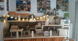 Besonders platzsparend und „rückenfreundlich“ sind erhöhte Gehege, die man z.B. auf einen Tisch oder ein Sideboard baut. Der Vorteil ist neben der rückenschonenden Reinigung auch, dass Zubehör wie Heu oder Streu direkt unter dem Gehege verstaut werden kann. So hat man die Sachen immer griffbereit und es steht nichts unnötig im Weg rum.
